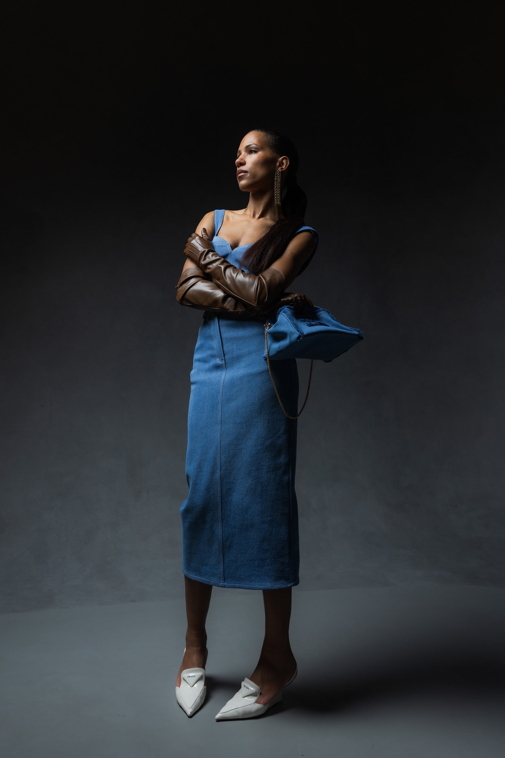 Стрейчевий денім щільно працює з тілом, підкреслюючи силует і забезпечуючи комфорт у русі.